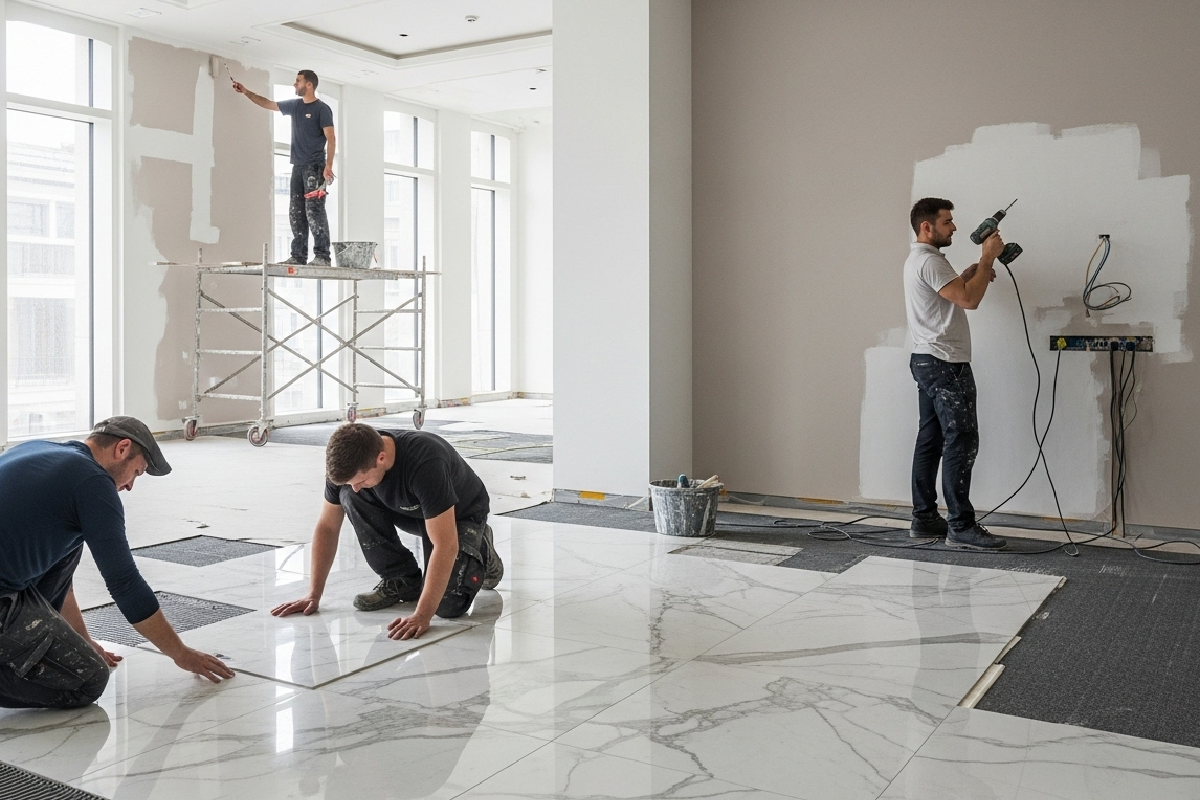 نحن شركة مقاولات متخصصة في تقديم حلول متكاملة بمجالات البناء والتشييد، مع خبرة في تنفيذ المشاريع بأعلى معايير الجودة. تشمل خدماتنا المقاولات العامة، التشطيبات الداخلية والخارجية، أعمال الديكور والتصميم، إضافةً إلى التكسية بمختلف أنواعها مثل الخشب، الحجر، الرخام، ومواد الـ HPL وغيرها. نسعى دائمًا لتقديم أعمال احترافية تلبّي تطلعات عملائنا وتجمع بين الدقة والجمال في كل مشروع.